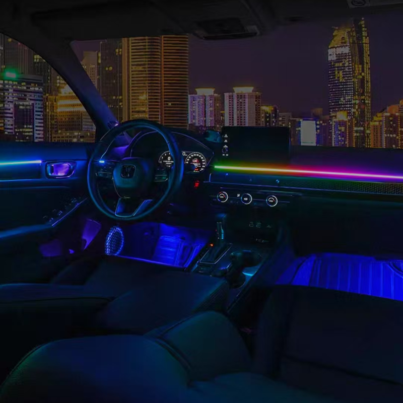 Ignite hot passion, music rhythm, brightness adjustment, a variety of modes, switch at will, soft light, custom color, ambient surround, instantly enhance the car grade.